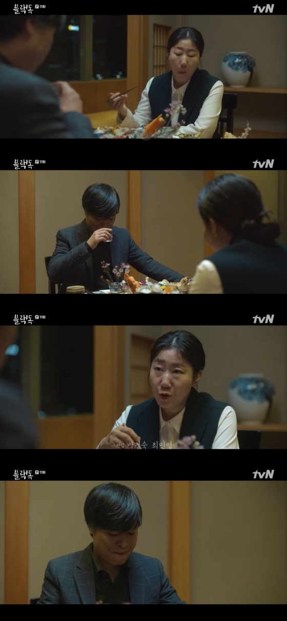20일 오후 방송된 tvN 월화드라마 '블랙독'(극본 박주연, 연출 황준혁)에서는 문수호(정해균 분)에게 불만을 드러내는 박성순(라미란 분)의 모습이 담겼다.