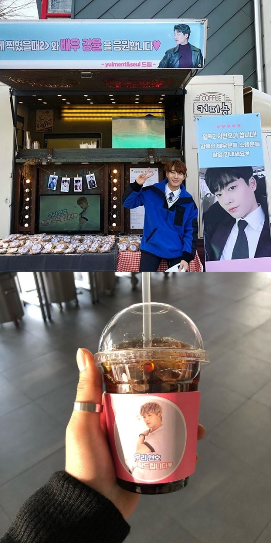 배우 강율이 팬들에게 받은 커피차에 감사 인사를 건넸다.