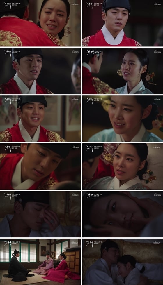 이경은 강은보를 붙잡아보기도 했지만 '비밀의 무게'를 알기에 더는 만류하지 못했고, 결국 무너지는 심정을 겨우 추스르며 강은보에게 떠날 것을 허락했다. 다만 집안을 복권시키고 곧 진짜 이름을 찾아줄 테니 강은보로서 당당히 떠나달라며 서글픈 입맞춤을 나눴다. 순간 망설이던 강은보가 "전하의 여인이 되고 싶습니다"며 이경을 붙들었던 것. 마침내 두 사람은 서로의 눈물을 어루만지며 첫날밤을 보냈고, 이경은 자신의 품에 안긴 강은보를 바라보며 "은애한다. 영원히"라고 맹세했다. 벅찬 눈빛으로 서로의 눈썹, 콧날, 입술에 손을 뻗는 두 사람의 사랑이 안방극장을 강렬한 감동 속으로 몰아넣었다.