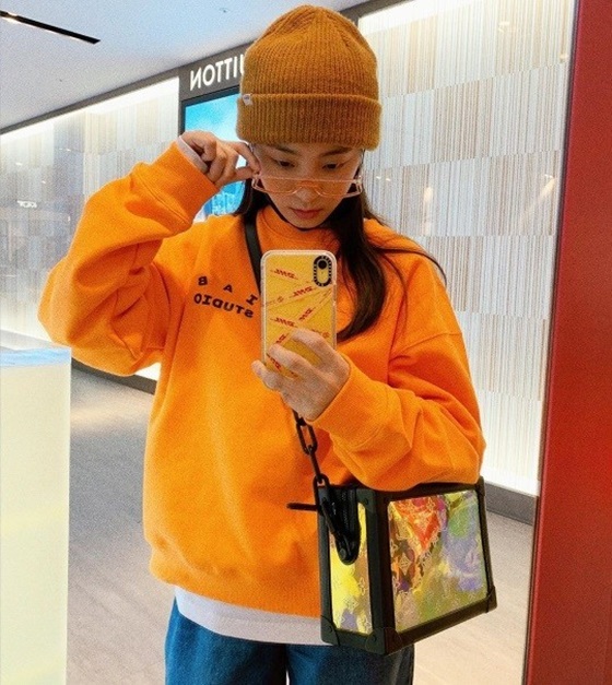 공개된 사진 속 윤보라는 안경테, 비니, 맨투맨 티셔츠, 핸드폰 케이스까지 모두 주황색으로 통일한 모습이다. 휴대폰을 바라보면서 거울셀카를 찍고 있는 그녀에게서상큼발랄한 매력이 전해진다.
