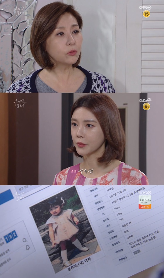 6일 오후 방송된 KBS 2TV 일일드라마 '우아한 모녀'(극본 오상희, 연출 어수선)에서는 홍유라를 찾는 전단지를 갖고 있는 한유진(차예련 분)을 보고 예민하게 반응하는 캐리정(최명길 분)의 모습이 그려졌다.
