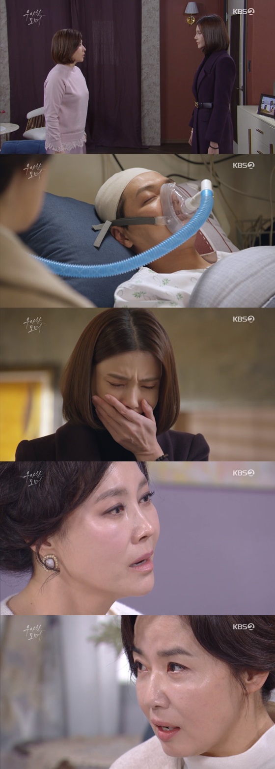 13일 오후 방송된 KBS 2TV 일일드라마 '우아한 모녀'(극본 오상희, 연출 어수선)에서는 서은하(지수원 분)가 30년 전 자신의 범행을 감추기 위해 친구 조윤경(조경숙 분)에게 거짓으로 구해준(김흥수 분)의 출생비밀에 대해 말하는 모습이 그려졌다.