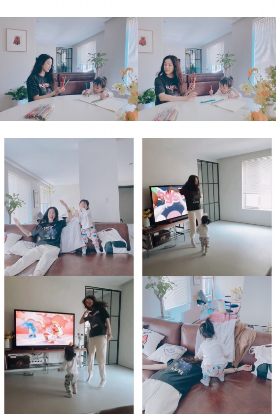 공개된 영상 속 정려원은 조카 다온과 함께 신나게 춤을 추고 있다. 춤을 춘 후 체력이 다 떨어진 듯 소파에 누워 있는 모습을 공개해 웃음을 유발했다.