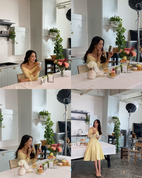 공개된 사진 속 김희선은 오프숄더 원피스를 입고 광고를 촬영하고 있다. 늘씬한 몸매와 동안 외모가 눈에 띈다.