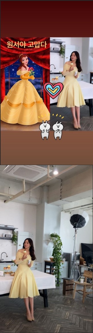 이어 김희선은 자신의 인스타그램 스토리에 "고마워"라는 글과 함께 디즈니 영화 '미녀와 야수'에 나오는 벨 공주를 비교한 사진을 게재했다.