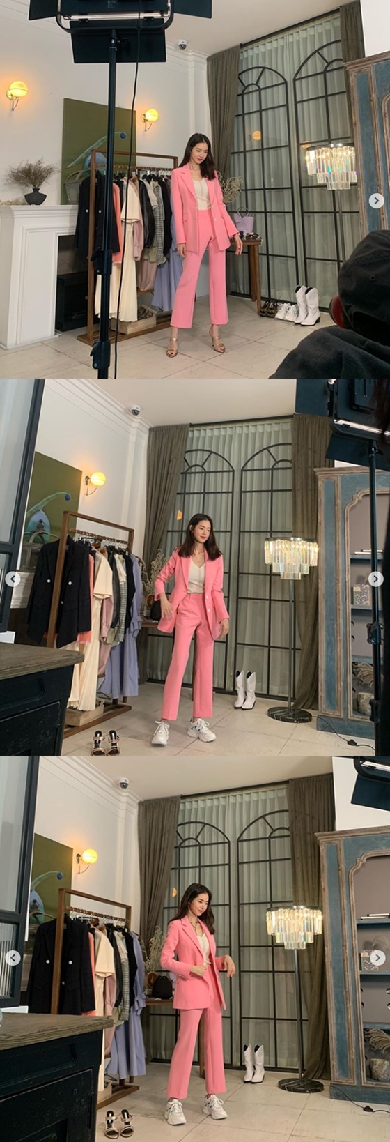 공개된 사진 속에는 화사한 분홍색 수트를 입고 촬영에 임하는 황승언의 모습이 담겼다. 황승언은 작은 얼굴과 긴 다리 길이로 모델 같은 우월한 비율을 자랑했다.