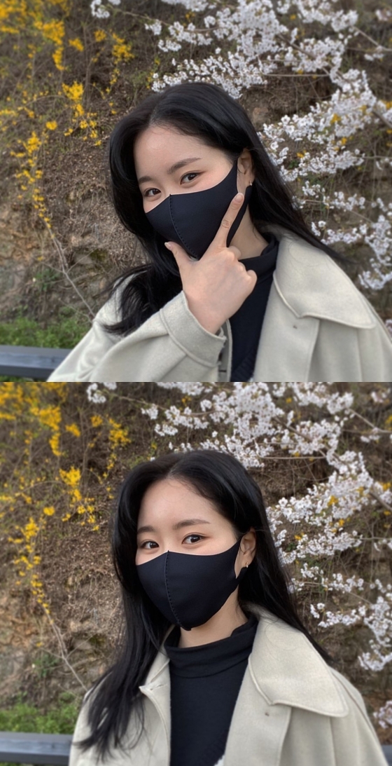 진지희는 지난 9일 자신의 인스타그램에 "#봄 #산책 #사회적 거리두기 #마스크 필수!"라는 글과 함께 사진 두 장을 게재했다.