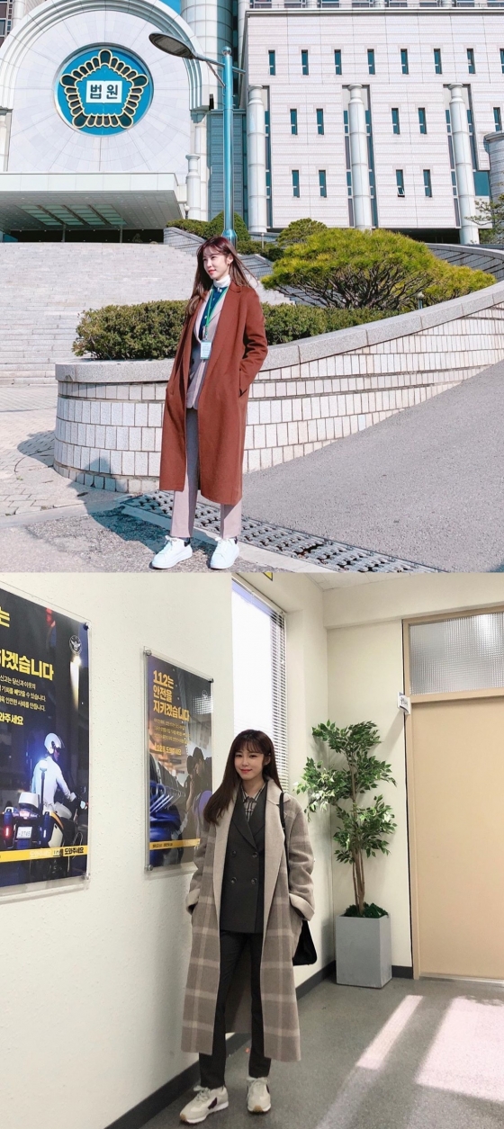 공개된 사진 속에는 법원 앞에 서 있는 전효성의 모습이 담겨있다. 또한 전효성은 실내에서 찍은 사진도 공유했다.