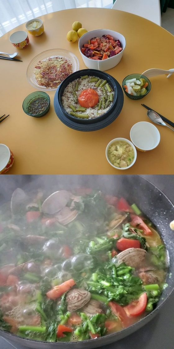 전혜빈은 사진으로 자신이 직접 요리한 아스파라거스 토마토 솥밥을 선보였다. 직접 요리를 한 뒤 예쁘게 플레이팅하며 수준급 요리 실력을 보였다.
