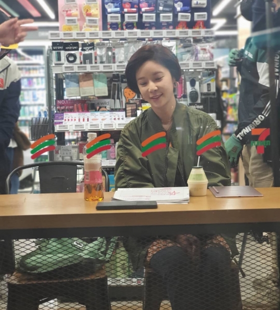 공개된 사진 속에는 편의점 안 마련된 의자에 앉아있는 황정음의 모습이 담겨있다. 황정음은 시선을 내리깐 채 미소 짓고 있다.