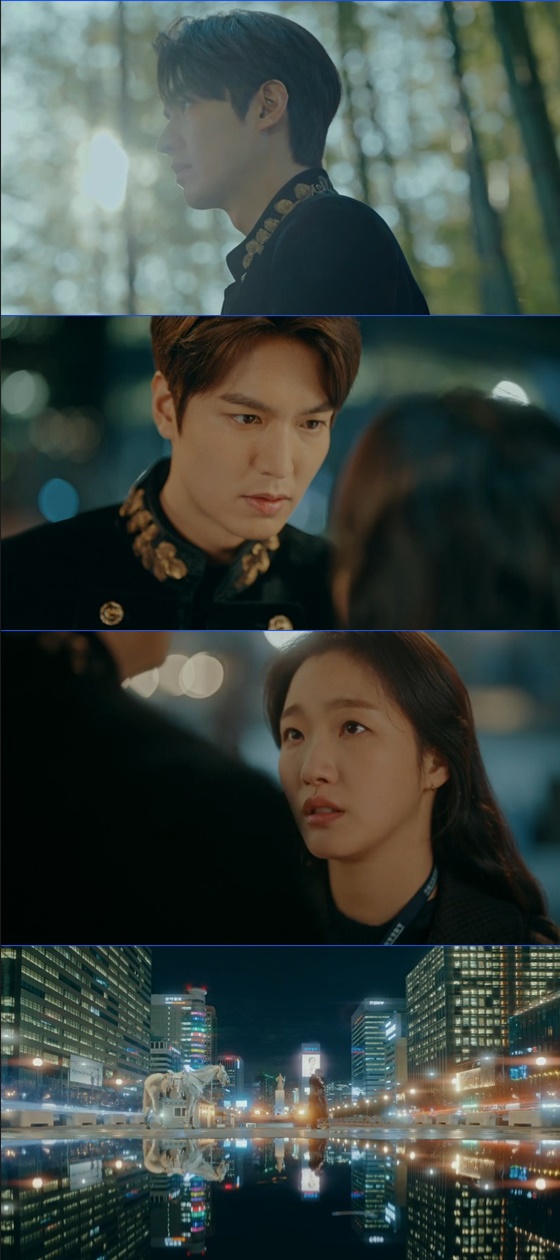 '더 킹: 영원의 군주' 이민호가 대한제국에서 대한민국으로 차원의 벽을 넘었다. 그는 그곳에서 김고은과 만났다.
