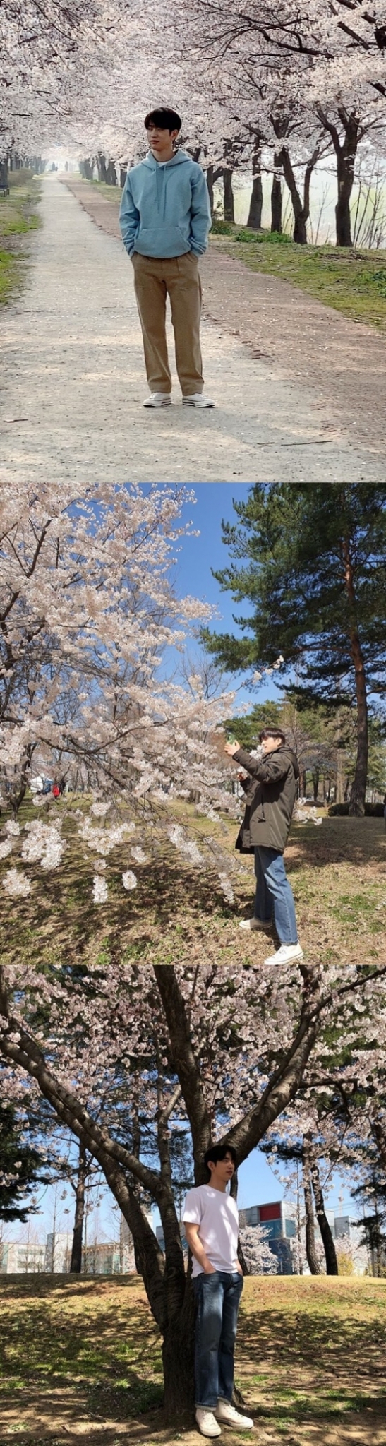공개된 영상 속 진영은 흩날리는 벚꽃 아래서 바지 주머니에 손을 꽂고 있다. 이어 패딩을 입고 벚꽃을 가까이서 구경하거나, 반팔을 입고 벚꽃 아래 서 훈훈한 분위기를 자아냈다.