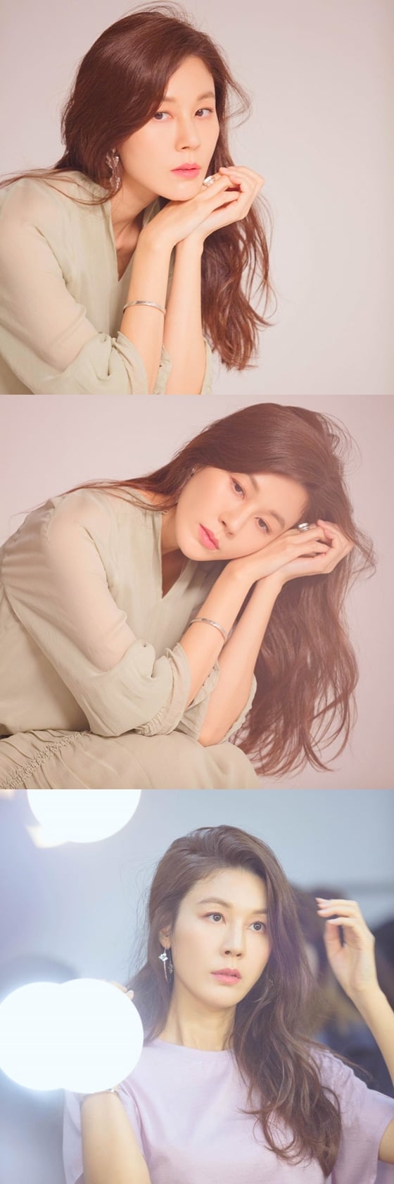 공개된 사진 속 김하늘은 긴 웨이브 헤어를 늘어뜨린 채 촬영에 임하는 모습이다. 여전한 동안 미모와 우아한 매력이 돋보인다.