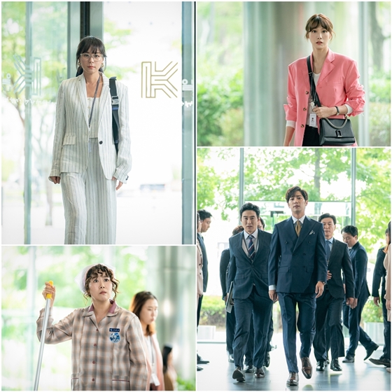 특히 황미순은 백찬미-임예은처럼 회사원이 아닌, 사내 미화원으로 분해 있어 호기심을 자아내고 있는 터. 더욱이 세 사람의 밀착 마크 대상인 윤석호(이상엽 분)는 여러 명의 수행원을 대동한 채 카리스마 넘치는 자태로 로비를 위풍당당하게 걷고 있다. '척 하면 착'인 국정원 베테랑 요원들이 같은 회사로 첫 출근하게 된 이유는 무엇인지, 윤석호가 어떻게 작전 타깃이 된 것인지 궁금증이 치솟고 있다.
