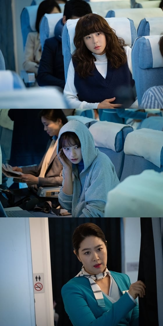 최강희, 유인영, 김지영의 '고공 미션 단체샷' 장면은 경기도 남양주시에 위치한 한 비행기 세트장에서 촬영됐다. 세 사람은 실제 비행기 내부를 정교하고 완벽하게 구현한 세트장을 둘러보면서 연신 감탄을 금치 못했던 상태. 또한 최강희와 유인영은 승무원 복장을 갖춰 입은 김지영의 모습에 "정말 잘 어울린다"고 끊임없이 칭찬을 늘어놔 현장의 분위기를 훈훈하게 만들었다. 특히 바쁜 촬영 스케줄 속에서도 따로 시간을 마련해 액션스쿨에 다니면서 기초 체력 훈련과 액션 연습에 매진했던 세 사람은 최영훈 감독의 디렉팅을 200% 소화해내며 스펙터클한 기내 액션 씬을 완성해 모두의 뜨거운 박수를 받았다.