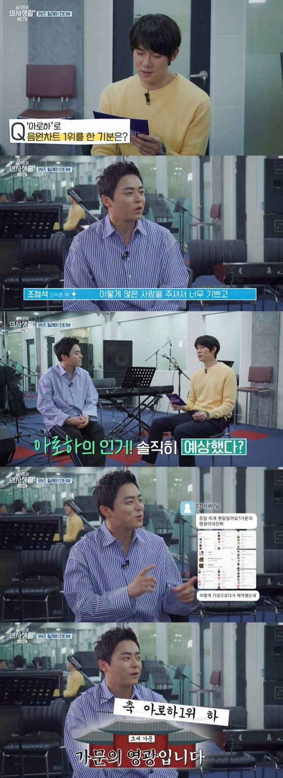 배우 조정석이 '슬기로운 의사생활 스페셜'을 통해 OST '아로하'의 인기를 언급했다.