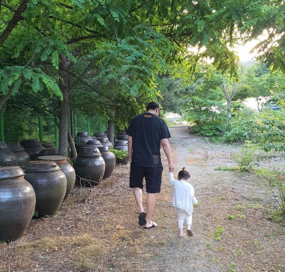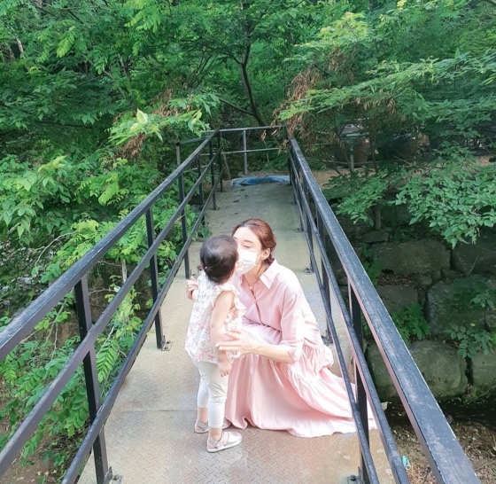 공개된 사진 속에는 딸과 마스크 위로 뽀뽀하는 차예련과 딸의 손을 잡고 다정하게 걸어가는 주상욱의 뒷모습이 담겨있다.