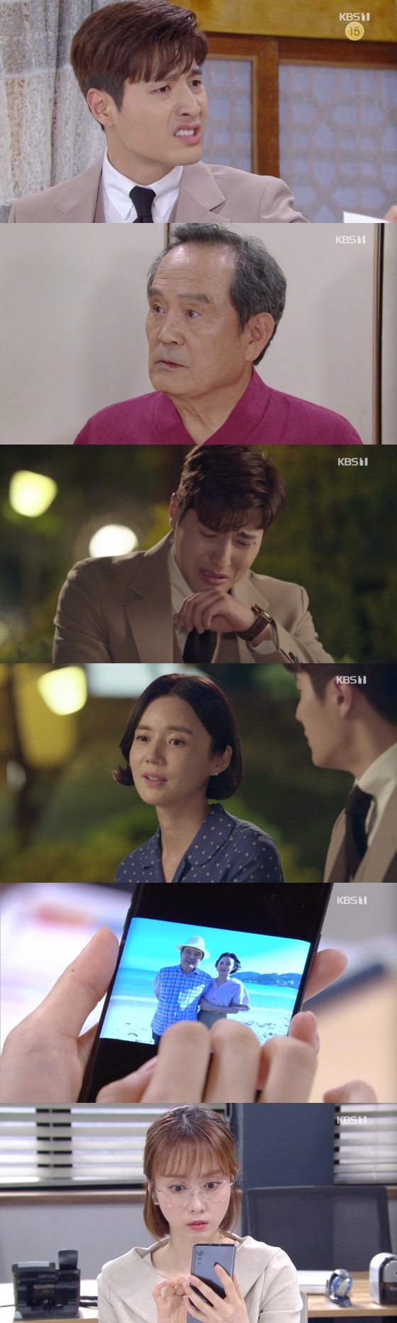 15일 방송된 KBS 1TV 일일드라마 '기막힌 유산'에서 김영지(주민하 분)가 부영배(박인환 분)와 공계옥(강세정 분)이 팔짱을 끼고 있는 사진을 봤다.