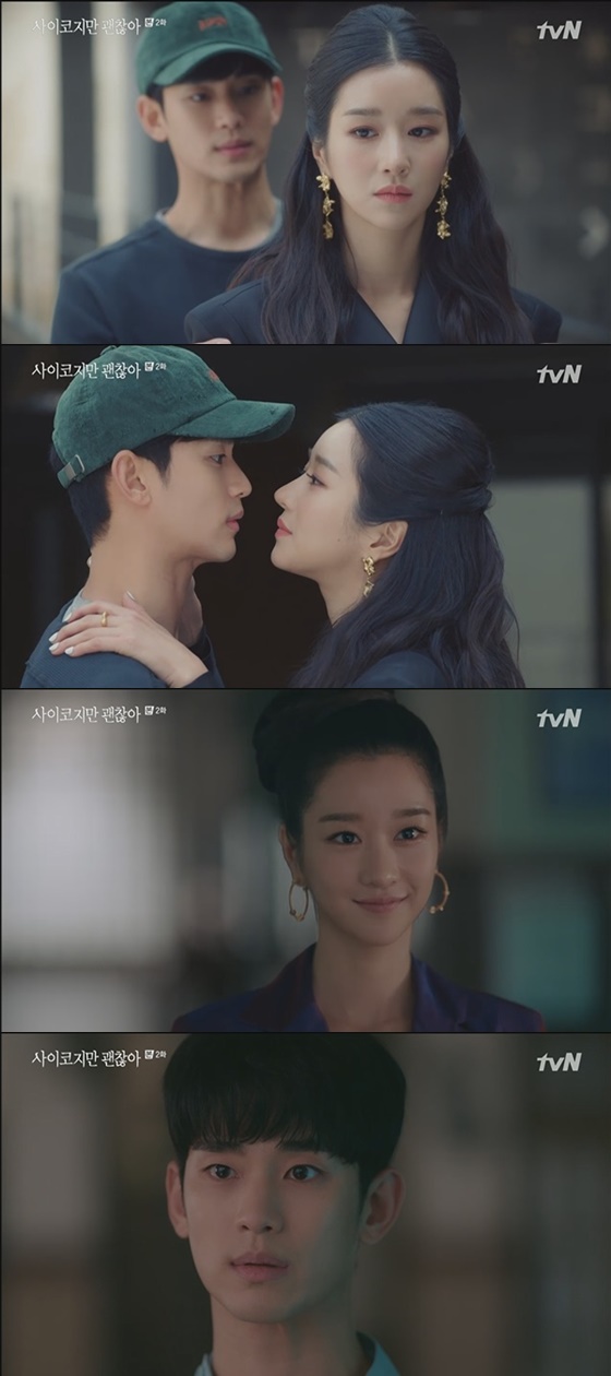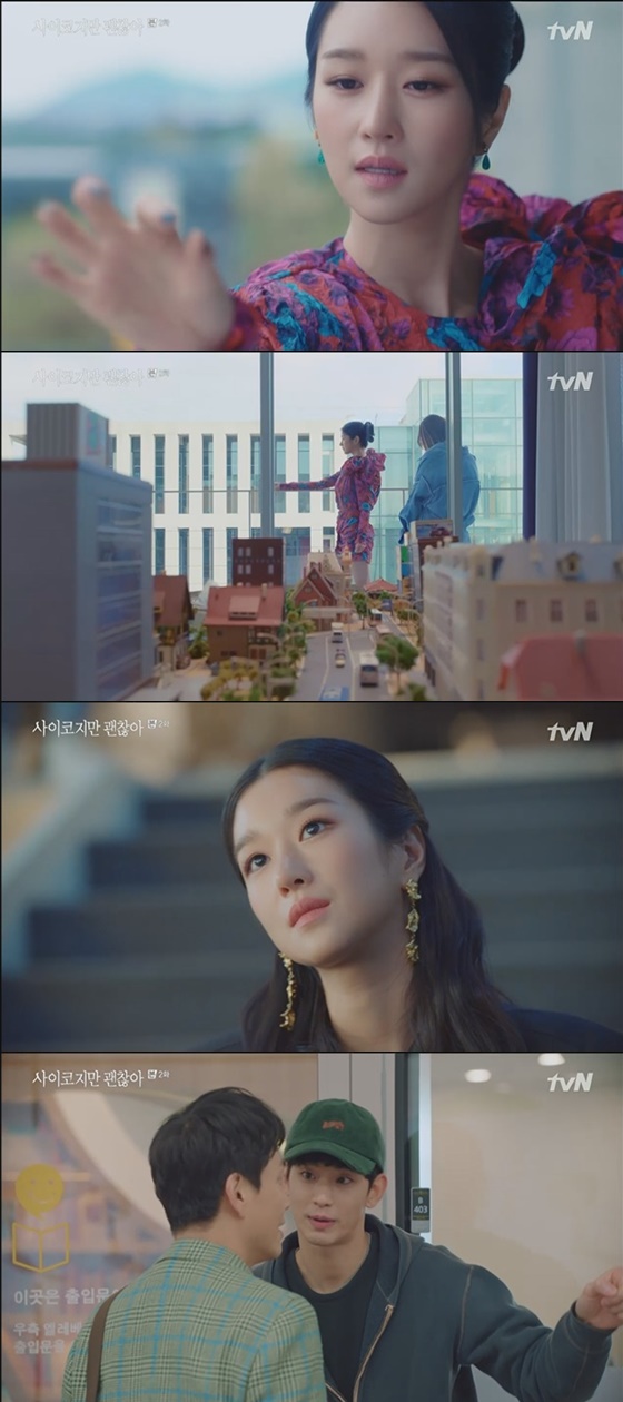 21일 오후 방송된 tvN 토일드라마 '사이코지만 괜찮아'(극본 조용, 연출 박신우)에서는 고문영(서예지 분)이 문강태(김수현 분)가 위치한 성진시에 찾아가는 모습이 그려졌다.