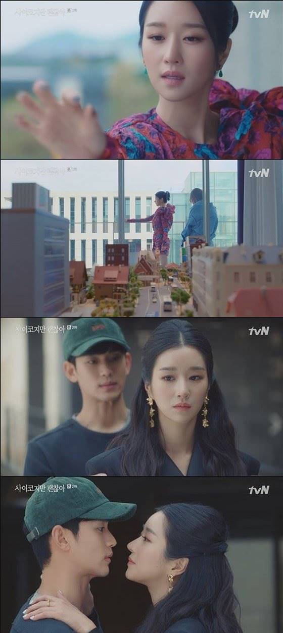 고문영은 문강태(김수현 분)을 만난 후, 감히 자신에게 일갈하는 그에게 흥미를 갖게 된다. 흥미로운 먹잇감이 나타난 것. 거대한 자신의 손아귀에 문강태를 장난감처럼 움켜쥐어 보려는 판타지스런 장면은 고문영의 독특한 정신세계를 그대로 보여준다.