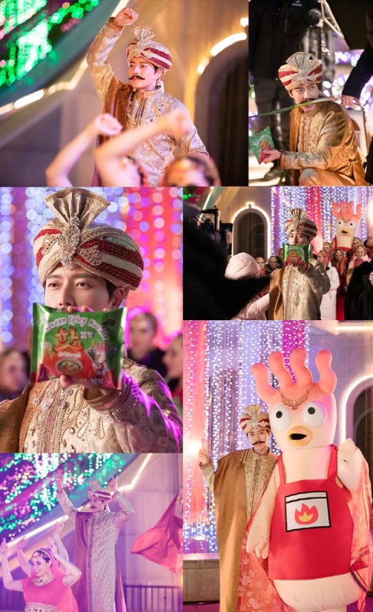 -극중 준수식품 핫닭면 캐릭터 핫닭이와 채식라면 CF를 인도 콘셉트로 촬영한 장면이 인상적이었다.