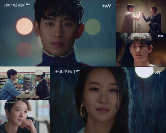 tvN 토일드라마 '사이코지만 괜찮아'(연출 박신우, 극본 조용, 기획 스튜디오드래곤, 제작 스토리티비·골드메달리스트)는 버거운 삶의 무게로 사랑을 거부하는 정신 병동 보호사 문강태(김수현 분)와 태생적 결함으로 사랑을 모르는 동화 작가 고문영(서예지 분)이 서로의 상처를 보듬고 치유해가는 한 편의 판타지 동화 같은 사랑에 관한 조금 이상한 로맨틱 코미디 드라마다.