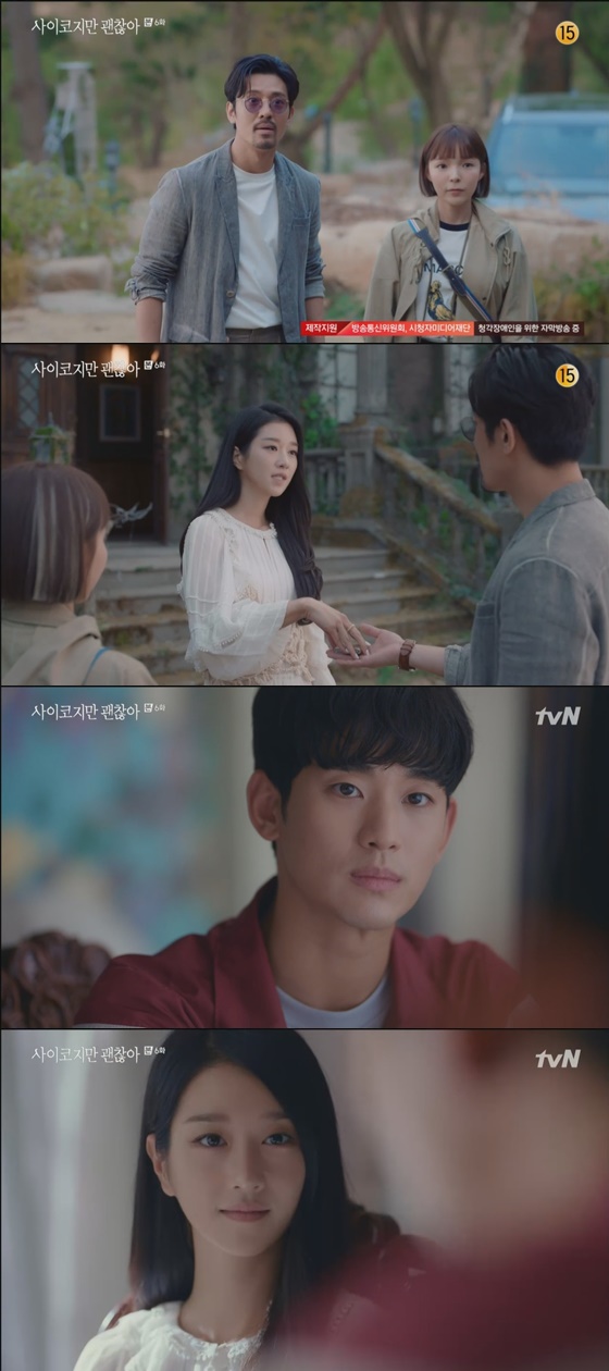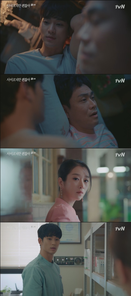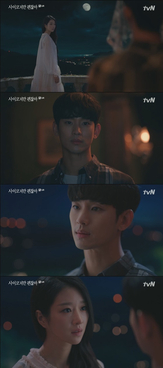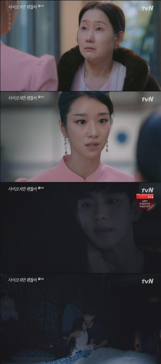 5일 오후 방송된 tvN 토일드라마 '사이코지만 괜찮아'(극본 조용, 연출 박신우)에서는 문강태(김수현 분)가 악몽을 꾼 고문영(서예지 분)을 안아주는 모습이 그려졌다.