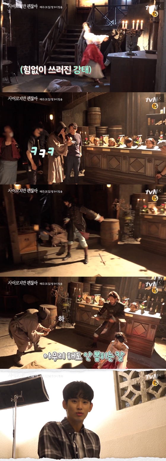 9일 오전 tvN 토일드라마 '사이코지만 괜찮아'의 '스페셜 메이킹'이 tvN 드라마, 포털 사이트 등을 통해 공개됐다. 이번 스페셜 메이킹은 지난 5일 방송된 6회 쿠키영상 촬영 비하인드로 '쿠키영상까지 완벼크. 피땀눈물 담은 NG 퍼레이드'다.