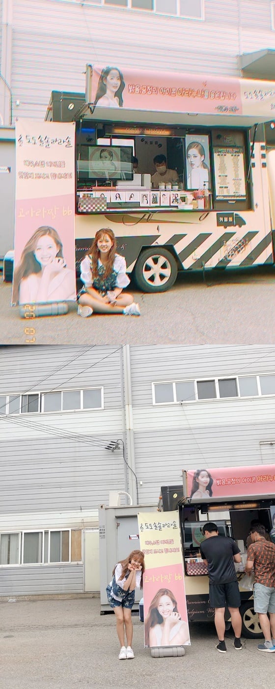 배우 고아라가 드라마 '미스 함무바리'에서 호흡을 맞춘 김명수에게 받은 커피차를 인증했다.
