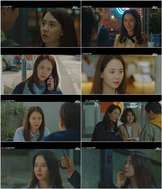 송지효는 지난 22일 방송된 JTBC 새 수목드라마 '우리, 사랑했을까'(극본 이승진, 연출 김도형)에서 꿈을 향한 열정으로 힘든 미션수행을 해내는 노애정 역으로 열연을 펼쳤다.