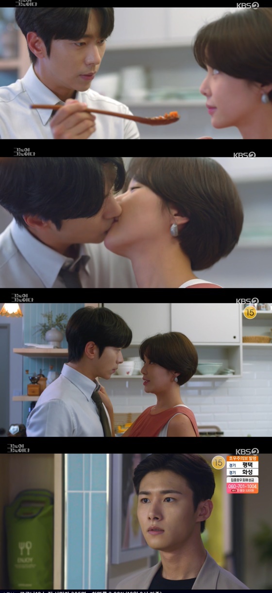 10일 오후 방송된 KBS 2TV 드라마 '그놈이 그놈이다'에서는 서현주(황정음 분)와 황지우(윤현민 분)가 요리를 하는 도중 키스했다.