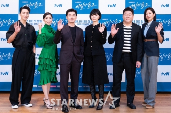 연예방송'비밀의 숲2' 주말 안방 책임집니다![★포토]발행 : 2020.08.11 ・ 15:06김창현 기자배우 이준혁, 윤세아, 조승우, 배두나, 김무성, 전혜진이 11일 오후 온라인 생중계로 진행된 tvN 새 주말드라마 '비밀의 숲2' 제작발표회에 참석해 포즈를 취하고 있다. '비밀의 숲2'는 '검경수사권 조정'이라는 대척점에서 다시 만난 검사 황시목(조승우 분)과 행동파 형사 한여진(배두나 분)이 은폐된 사건들의 진실로 다가가는 추적극이다. 오는 15일 첫 방송. / 사진=tvN 제공<저작권자 © 스타뉴스, 무단전재 및 재배포 금지>비밀의숲2추천 기사김창현 기자기자홈좋아요 연예-방송의 인기 급상승 뉴스연예-방송의 최신 뉴스