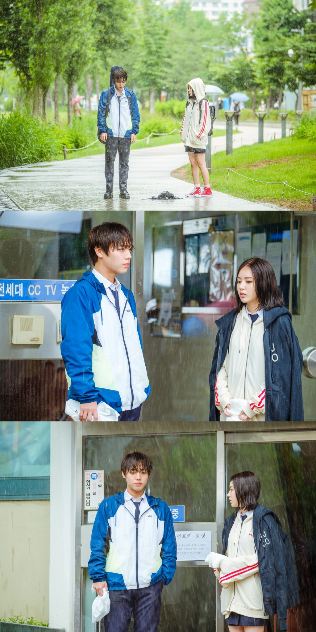 특히 비에 흠뻑 젖은 모습에 머리부터 옷까지 모두 엉망인 와중에도, 두 사람의 감출 수 없는 '만찢비주얼’은 감탄을 자아낸다. 1회가 공개되자 팬들의 찬사가 쏟아질 정도로 훈훈한 비주얼을 자랑했던만큼, 박지훈과 이루비는 비에도 끄덕없는 눈호강 비주얼로 눈길을 사로잡았다. 더불어 첫 회부터 자연스러운 케미를 선보였던 온미남 박지훈과 냉미녀 이루비는 스틸컷에서도 묘한 케미를 이루며, 본격적으로 펼쳐질 로맨스에 대한 기대를 더욱 높이고 있다.