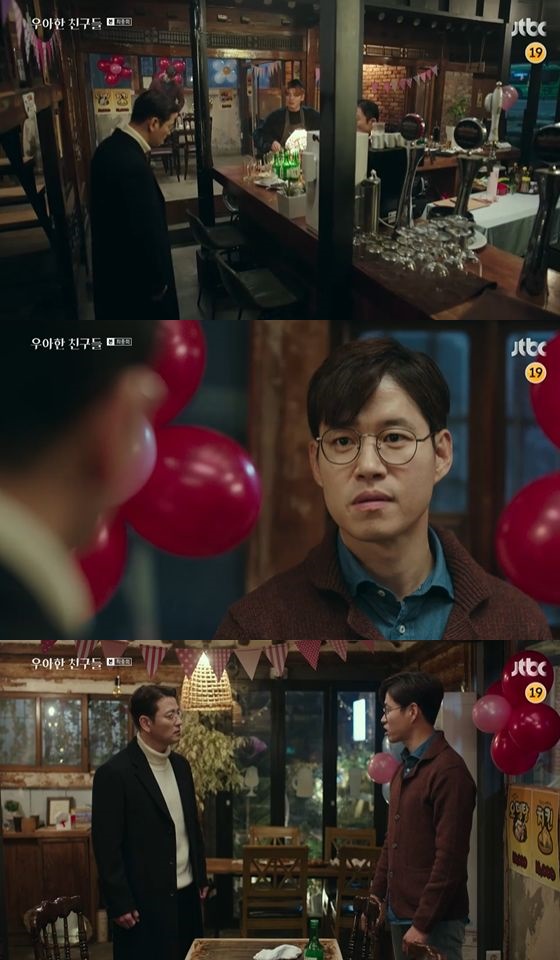 5일 방송된 JTBC 금토드라마 '우아한 친구들'에서는 안궁철(유준상 분)의 가게 오픈 첫날 찾아온 정재훈(배수빈 분)의 모습이 전파를 탔다.