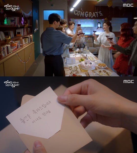 14일 오후 방송된 MBC 드라마 '연애는 귀찮지만 외로운 건 싫어!'에서 이나은(김소은 분)의 친구들이 이나은의 작가 데뷔를 기념해 특별 파티를 준비하는 장면이 그려졌다.