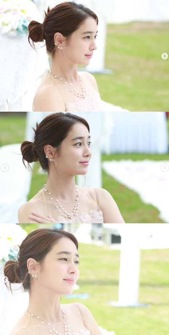 공개된 사진은 KBS 2TV 주말 드라마 '한 번 다녀왔습니다' 속 송다희(이초희 분)의 결혼식 촬영 장면으로, 극 중 송나희 역으로 분한 이민정이 아름다운 드레스를 입고 미모를 뽐내고 있다.