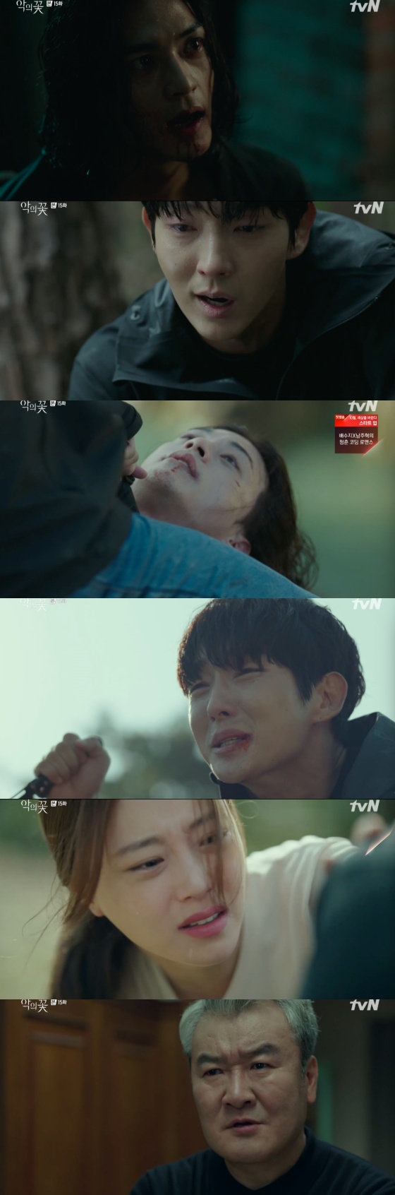 '악의 꽃'에서 이준기가 문채원 대신 김지훈 총에 맞아 의식 불명에 빠졌다.