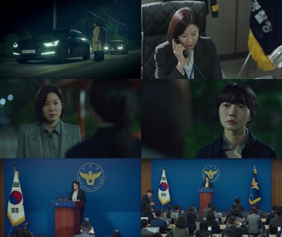 신재용(이해영 분) 수사국장은 기자회견을 통해 경찰들을 음해하고 위협하려는 배후가 있다며 형사법제단을 지목했다. 한여진(배두나 분)은 아직 확실하지 않다고 했지만 최빛(전혜진 분)은 "우태하(최무성 분)든, 김사현(김영재 분)이든 상관없이 배후에 있기만 하면 돼. 그럼 우리가 이겨"라며 여진의 말을 일축했다.