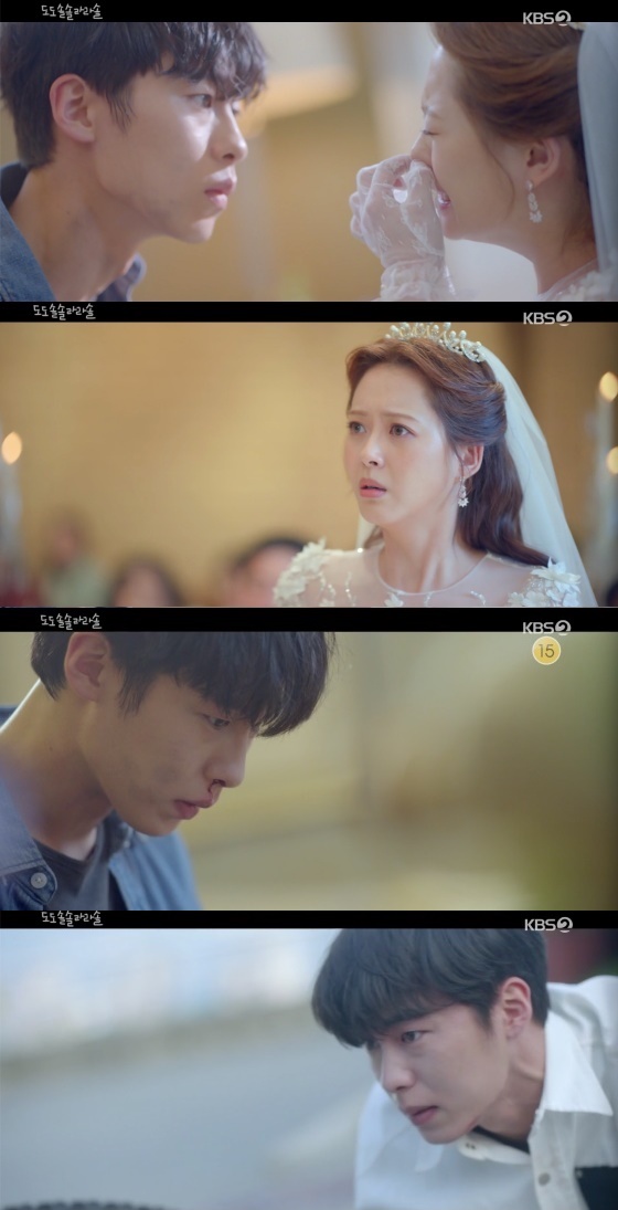 선우준은 코피를 흘렸고, 구라라의 웨딩드레스에도 피가 튀게 됐다. 이에 선우준이 수정액을 이용해 흔적을 지워줬다.