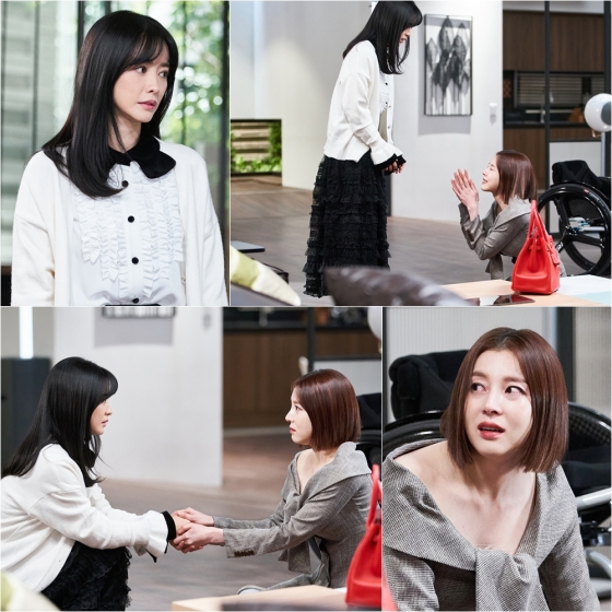 제작진은 29일 박영린의 눈물 사죄가 담긴 스틸을 공개해 궁금증을 유발한다. 공개된 스틸에서 박영린은 홍수아가 이재우의 전 부인이라는 사실을 알게 된 뒤 그녀를 집요하게 괴롭혔던 것과 180도 다른 모습으로 충격을 선사한다. 홍수아 또한 두 손을 싹싹 빌며 사죄하는 박영린의 행동에 당혹스러워하고 있다.