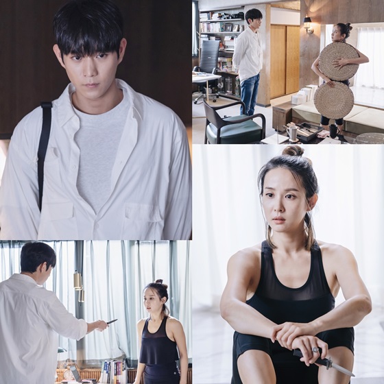 '바람피면 죽는다'에서 조여정과 김영대가 칼로 대치하는 장면이 포착돼 궁금증을 유발한다.