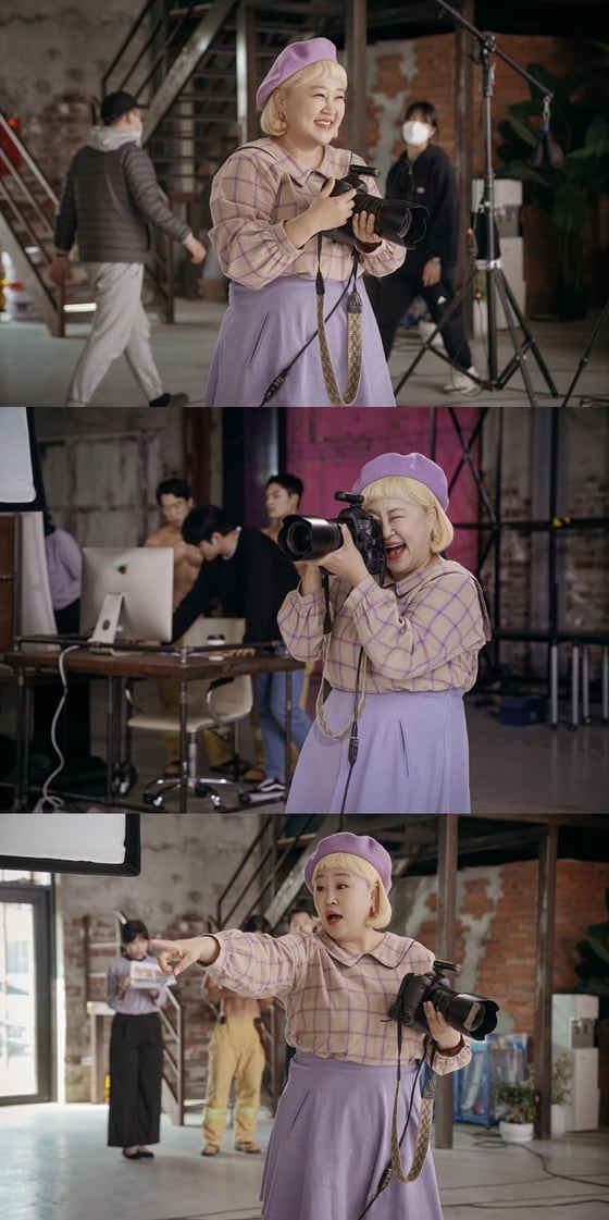 공개된 사진 속 홍윤화는 스튜디오로 보이는 곳에서 커다란 카메라를 손에 든 채 열심히 촬영 중이다. 파스텔톤의 러블리한 의상, 연보라색 베레모 스타일링이 홍윤화의 귀여운 매력은 물론 극중 포토그래퍼 캐릭터의 특징까지 임팩트 있게 보여주며 기대를 더한다.