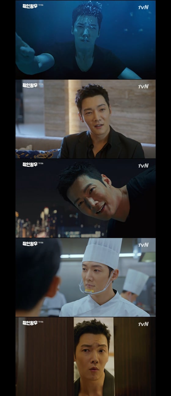 최진혁은 지난 12일 첫 방송된 tvN 토일드라마 '철인왕후'(극본 박계옥·최아일, 연출 윤성식)에서 마성의 셰프 장봉환 역으로 등장했다. 1회에서 그는 수영장에 빠진 후 김소용(신혜선 분)과 입맞춤을 나눈 뒤 김소용의 몸을 통해 깨어나는 과정을 천연덕스럽게 소화했다.