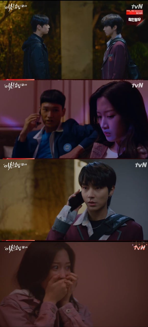 24일 오후 방송된 tvN 수목드라마 '여신강림'에서 이수호(차은우 분)와 한서준(황인엽 분)이 임주경(문가영 분)을 구하러 가는 장면이 그려졌다.