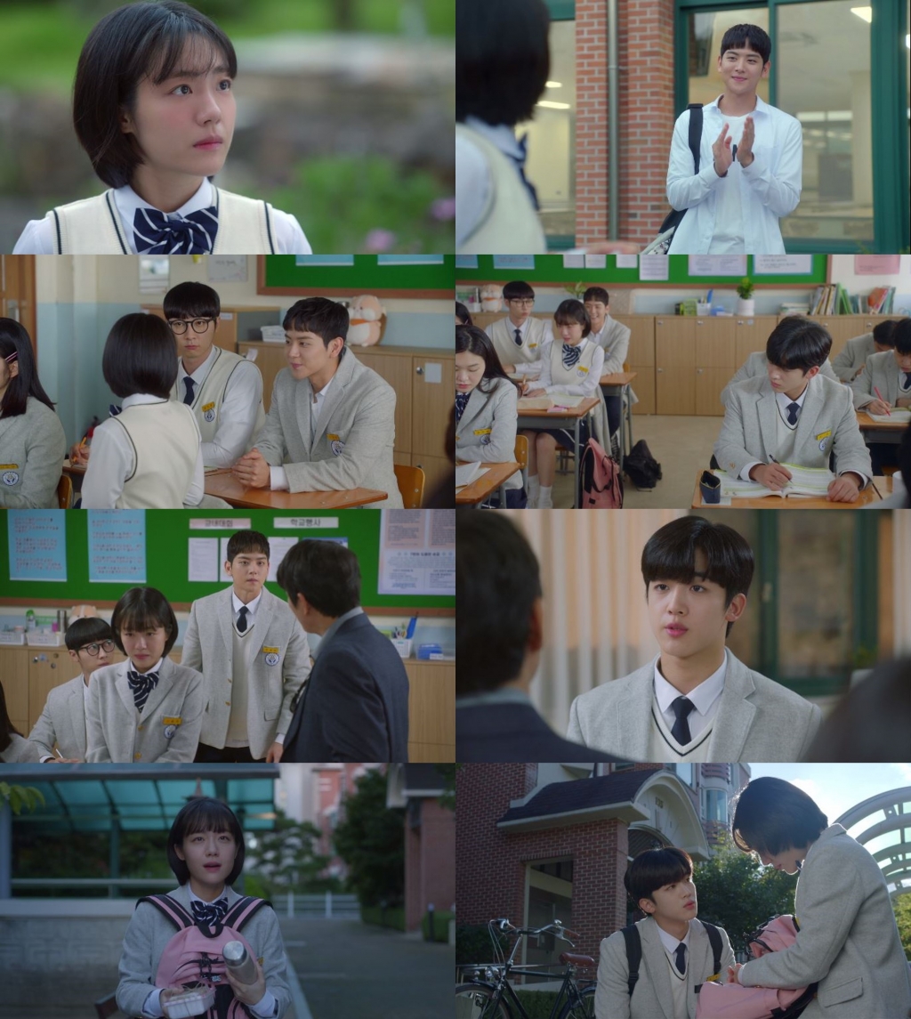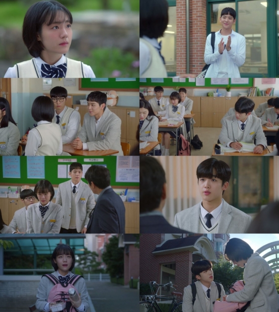 야간 자율학습 시간에 연애편지를 쓰다가 선생님에 들켜 꾸중을 듣는 신솔이를 위해 우대성과 차헌이 나서는 장면은 이번 첫 화의 하이라이트. 민망해하는 신솔이를 위해 선생님에게 당당하게 맞서 그녀를 대변해주는 차헌과 그를 지켜보는 우대성 사이에 펼쳐지는 보이지 않는 신경전은 시청자들에 심쿵을 선사하는 동시에 앞으로의 삼각관계에 대한 기대를 극대화했다. 특히 엔딩에서 차헌을 기다리다 깜빡 잠이 든 신솔이를 애틋하게 바라보는 차헌의 모습은 최고의 심쿵모먼트로 곧 공개될 2화에 대한 기대를 더욱 높였다.