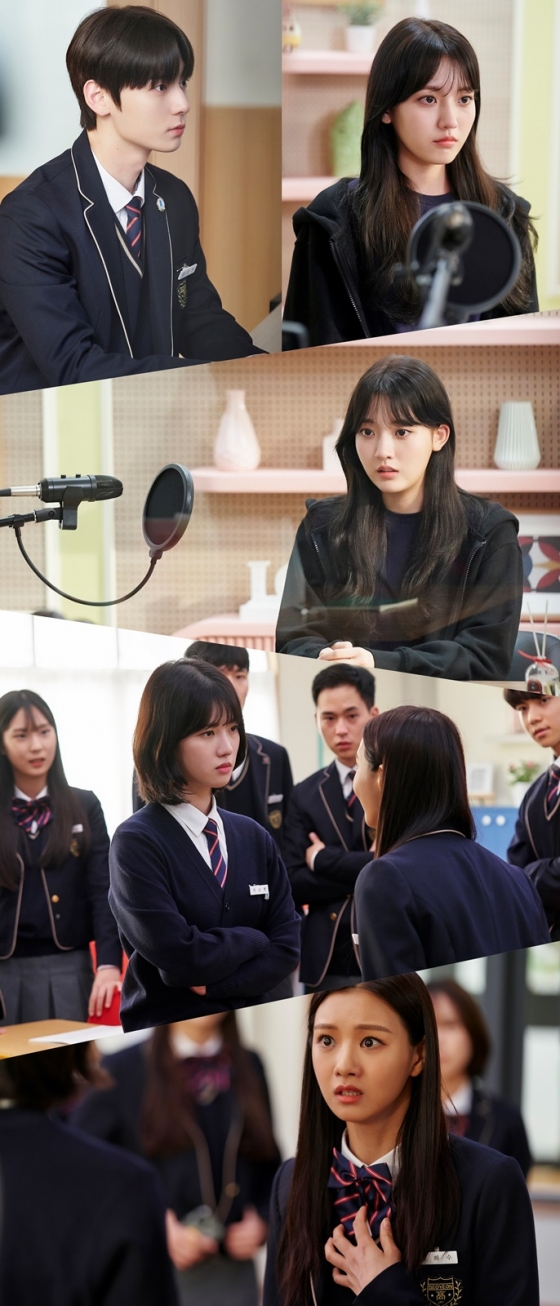 이런 그녀가 평소답지 않게 꾸밈없는 모습으로 방송부실 부스에 앉아 있는 모습이 포착돼 호기심을 안긴다. 밖에는 스탠바이 중인 고은택(황민현 분)의 모습까지 더해져 대체 어떤 이야기를 하려는 것일지 궁금해지는 것.