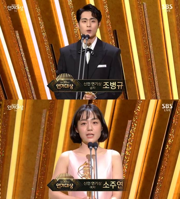 배우 조병규, 소주연이 '2020 SBS 연기대상' 신인연기상의 주인공이 됐다.