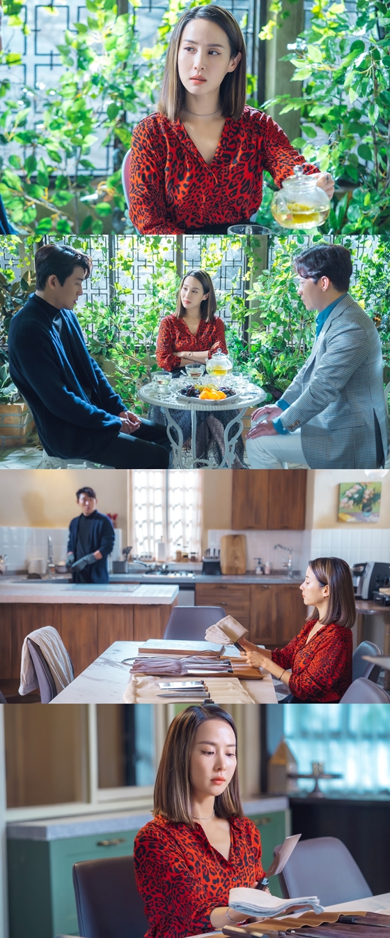 이런 가운데 7일 방송에 앞서 공개된 사진엔 새빨간 호피 무늬 상의를 입은 여주의 모습이 시선을 강탈한다. 그녀가 키우는 온갖 독초가 가득한 테라스에 모인 여주, 우성, 진호. 세 사람 사이 극한의 긴장감이 흐른다. 여주는 우성을 쏘아보며 의문의 차를 건네고 있고, 우성과 진호는 두 손을 모으고 '죄인 모드'로 여주의 눈치를 살피며 있다.