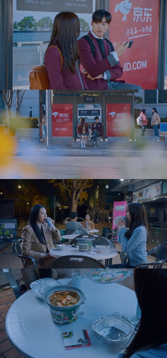 먼저, 임주경(문가영 분)이 버스 정류장에서 버스를 기다리는 장면에서는 징동동중국의 전자상거래 기업 징둥닷컴(京東)의 로고가 새겨진 화면이 등장했다. 임주경이 이수호(차은우 분)과 대화를 나누는 장면에서도 뒷배경으로 쓰였다.