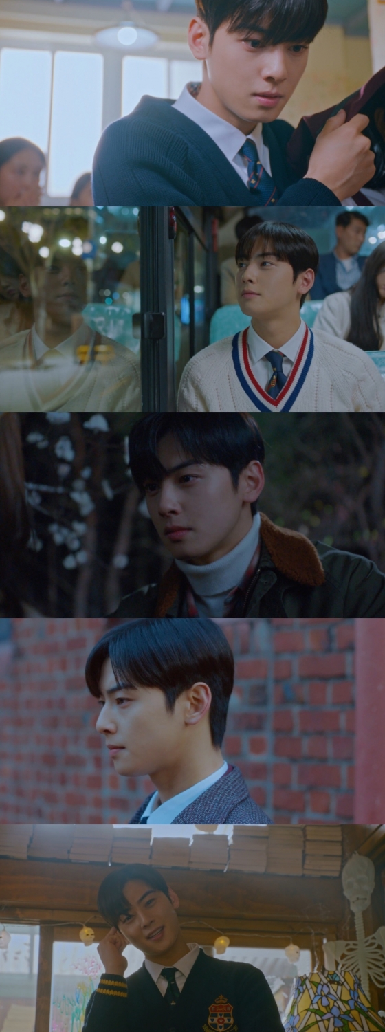 첫 등장부터 저세상 까칠함으로 보는 이들을 얼어 붙게 만들었던 수호는 2회 엔딩에서 미묘한 반전 매력을 드러내 설렘 지수를 끌어올렸다. 교실에서 우연한 사고로 얼굴이 케이크 범벅 된 주경이 친구들에게 민낯을 들킬까 봐 걱정하던 그때, 수호가 백마 탄 왕자처럼 등장해 교복 재킷으로 주경의 얼굴을 감쌌다. 이 장면에서 차은우는 차갑게만 보이던 캐릭터 뒤에 감춰져 있던 따뜻한 배려심을 담백하게 연기하며 시청자들의 흐뭇한 미소를 자아냈다.